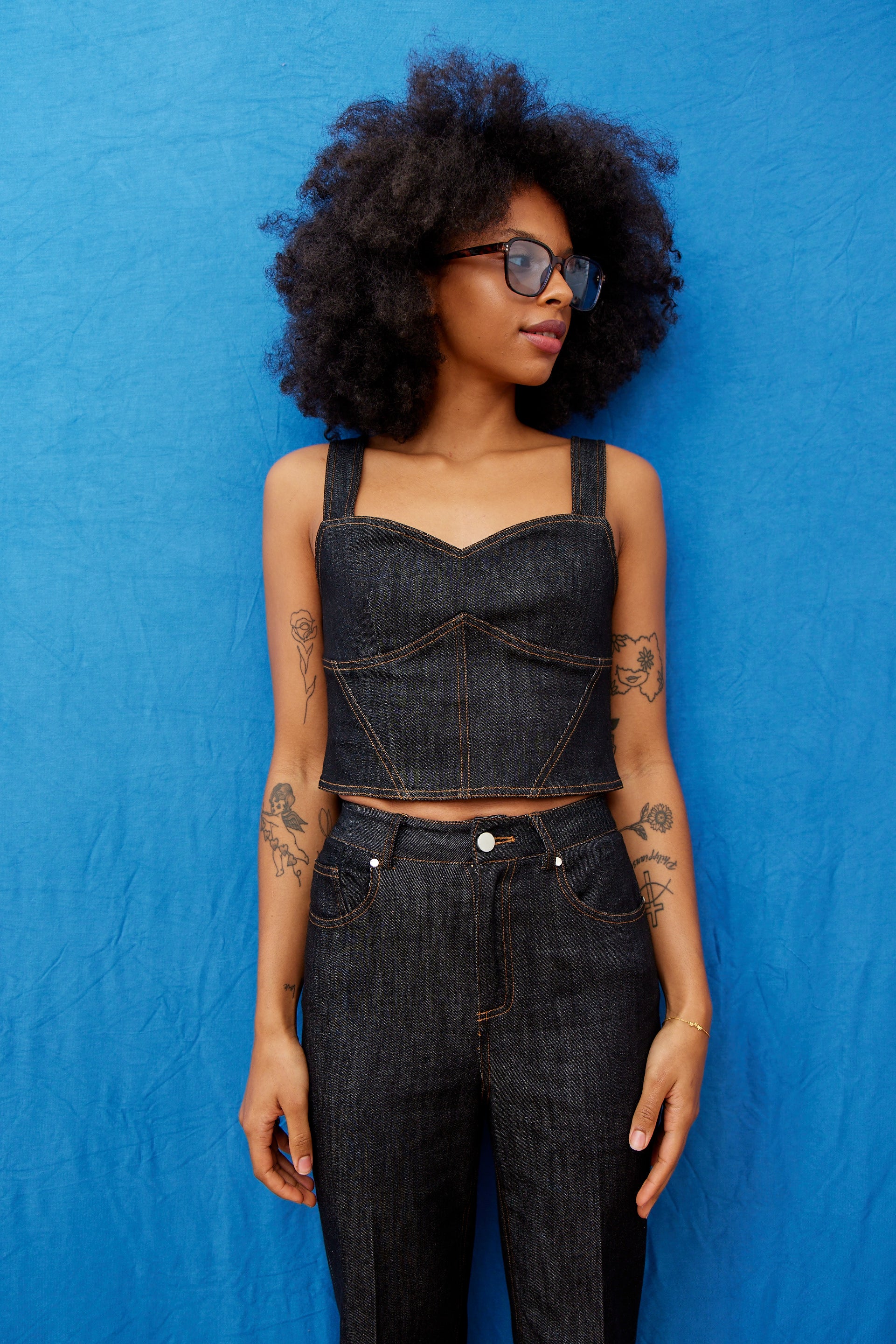 Farven i denim har en bestemt mørk nuance som adskiller sig fra andet.