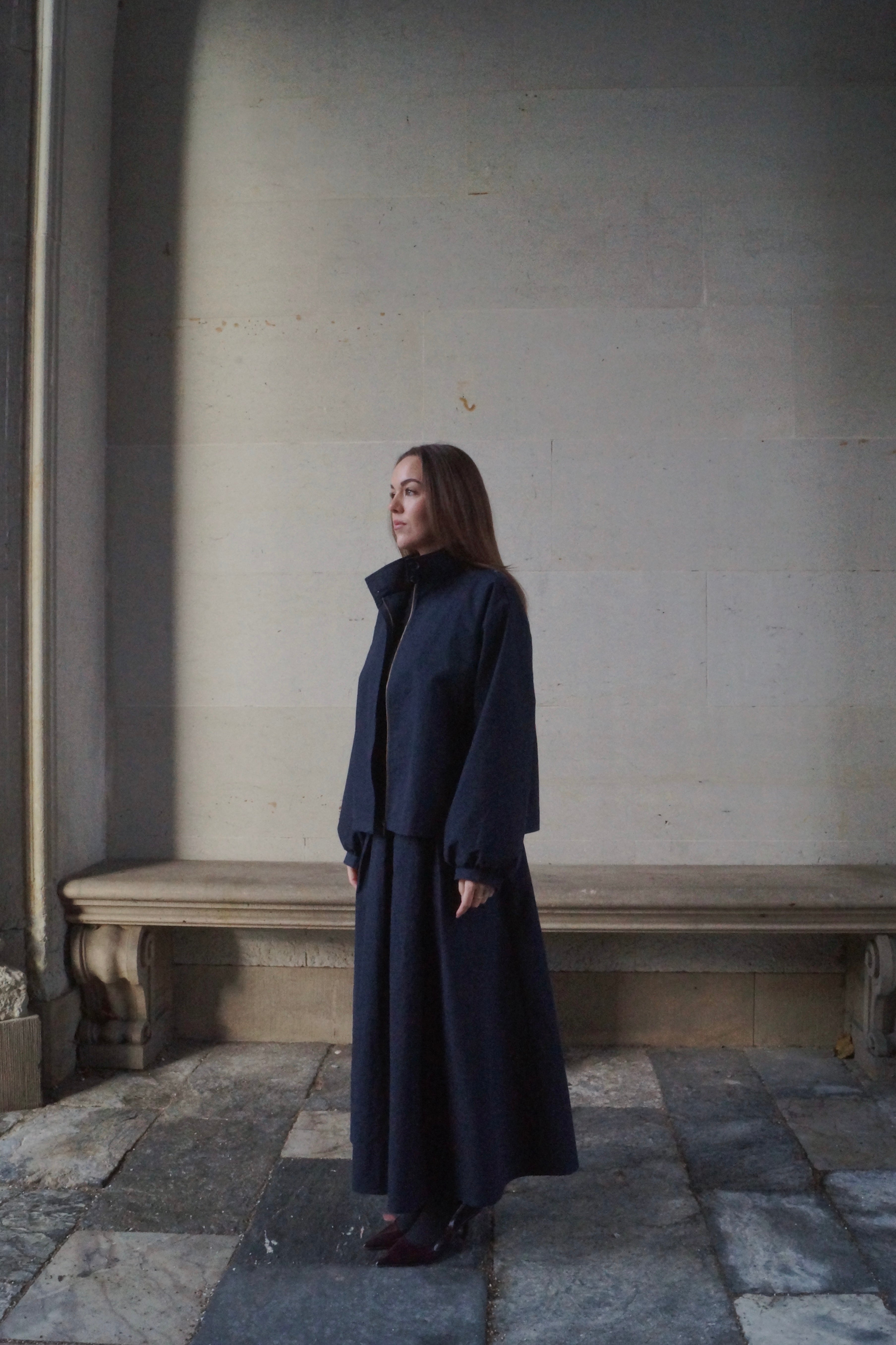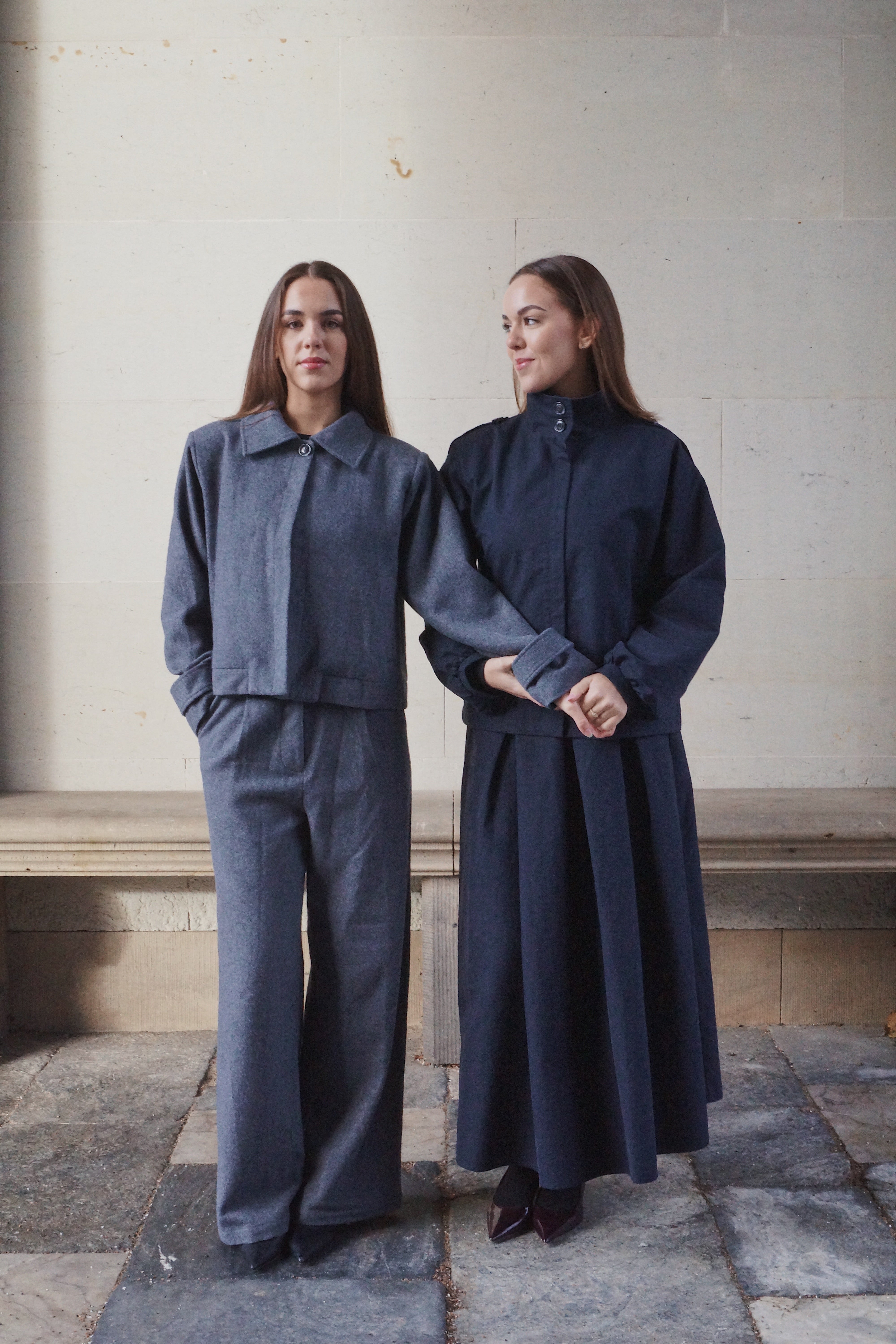 Opgrader din garderobe med dette elegante damesæt, bestående af en kort trenchcoat og en lang, voluminøs maxi-nederdel i navy. Sættet kombinerer moderne damemode med tidløs elegance og giver et stilrent, eksklusivt look, der fungerer perfekt til både hverdag og særlige anledninger.