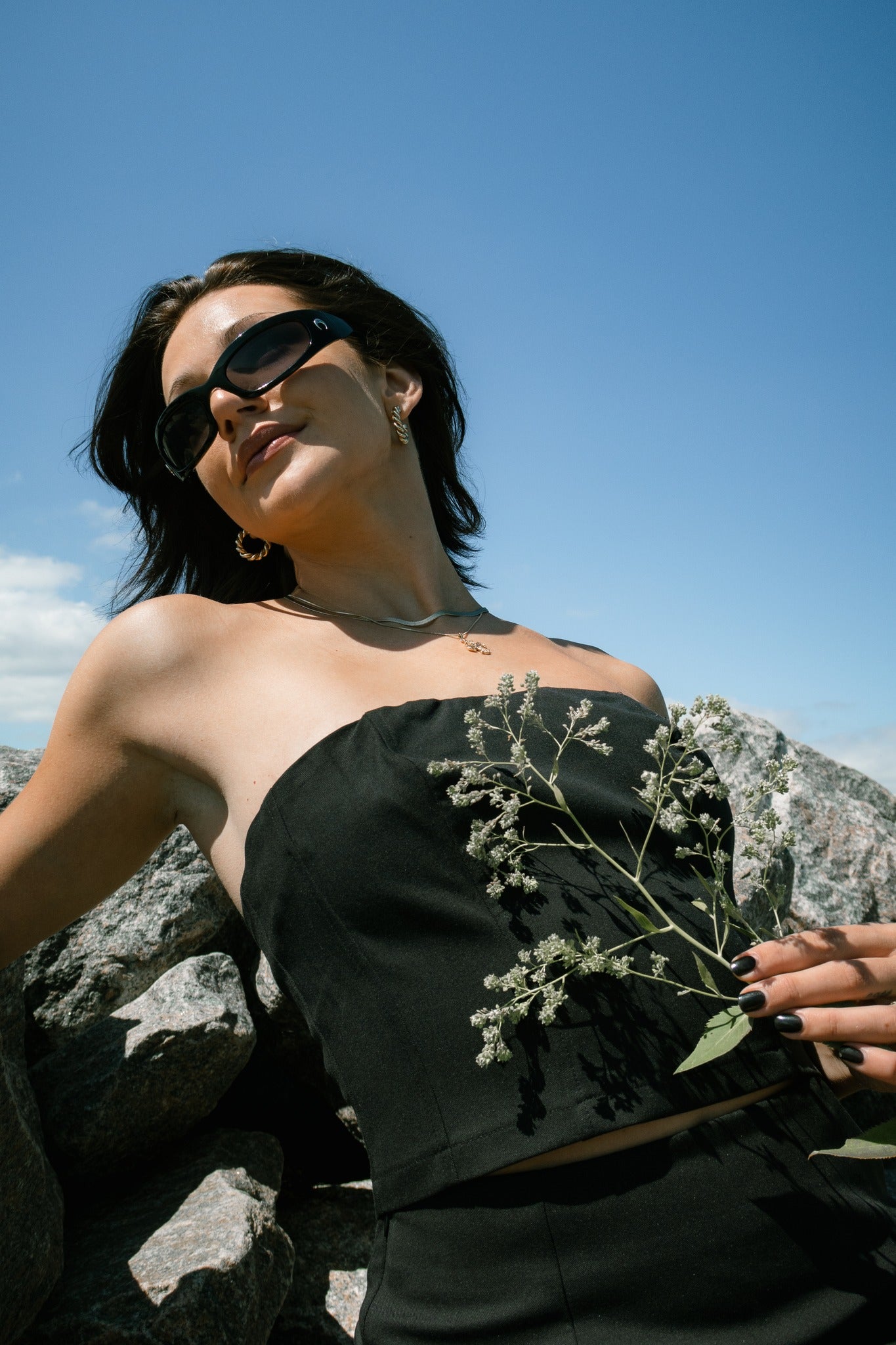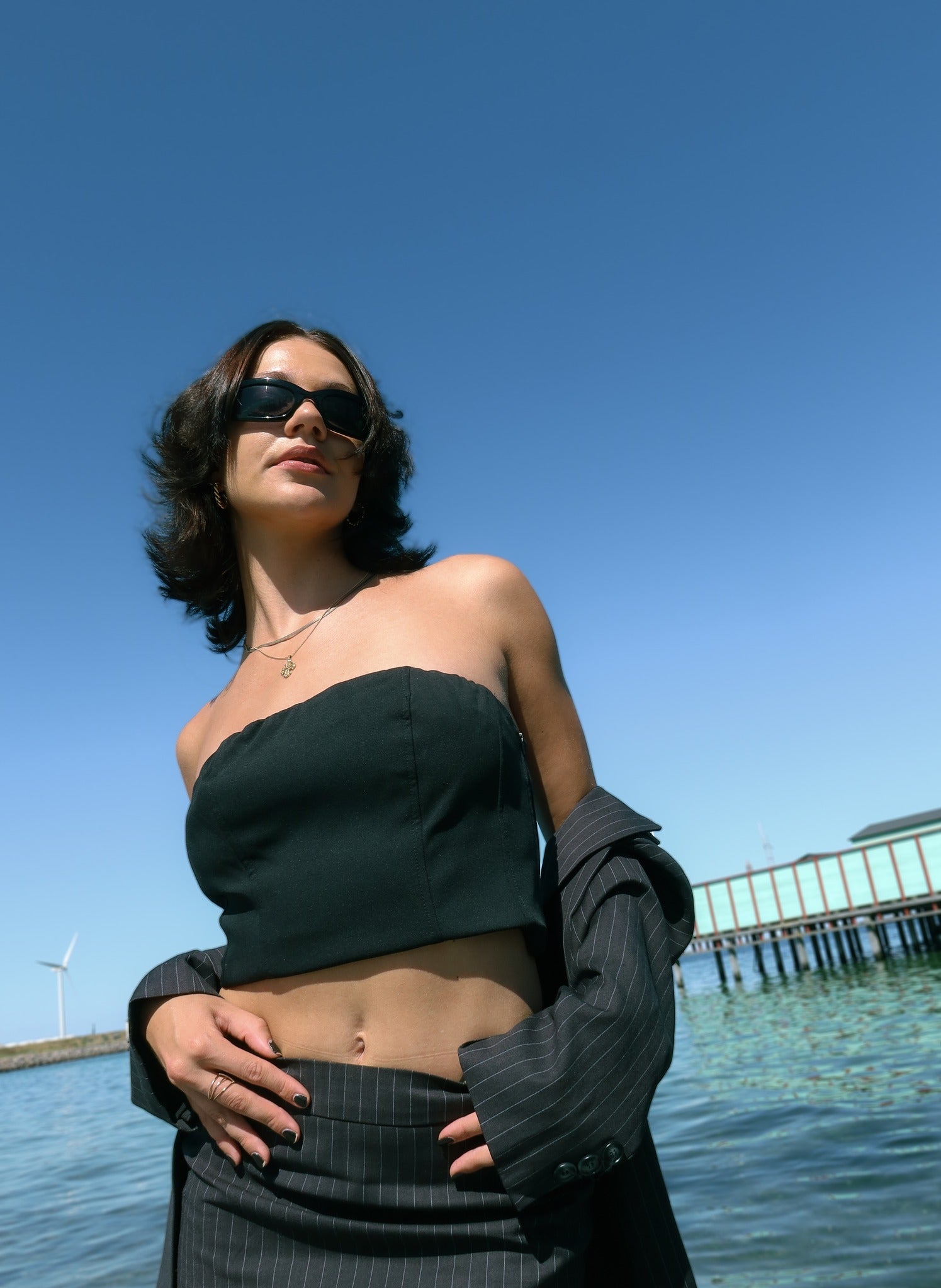 Korset toppen kan matches med alt fra nederdele og bukser. Derudover gør farven sort den let at style.